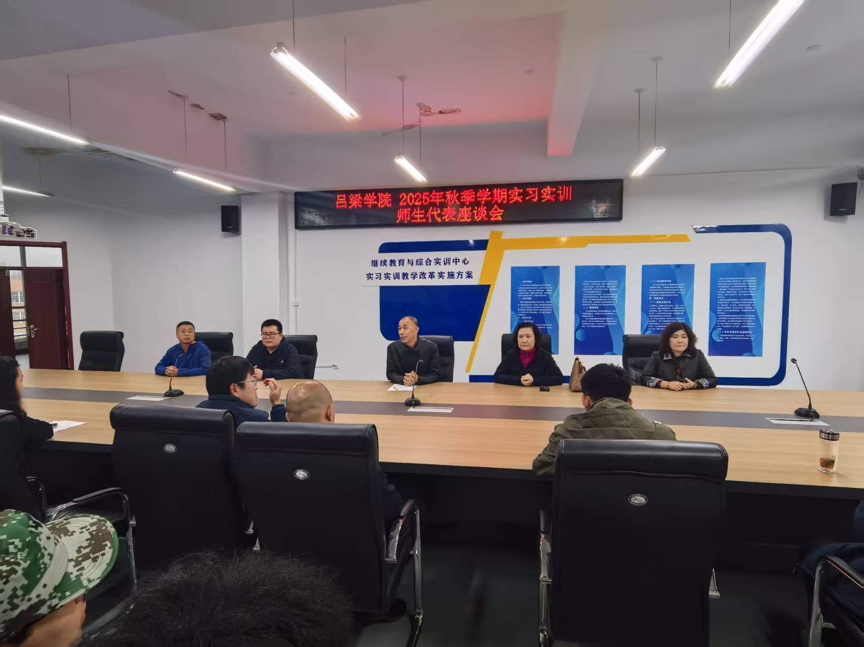 10月9日17时,吕梁学院2025年秋季学期实习实训师生代表座谈会在综合实训中心四楼会议室召开。吕梁学院继续教育与综合实训中心党总支书记王辉、党总支副书记任海珍、继续教育与综合实训中心副主任吕军、参训系部带队老师、综合实训中心指导教师、学生代表(参训班级班长、团支书)参加会议。